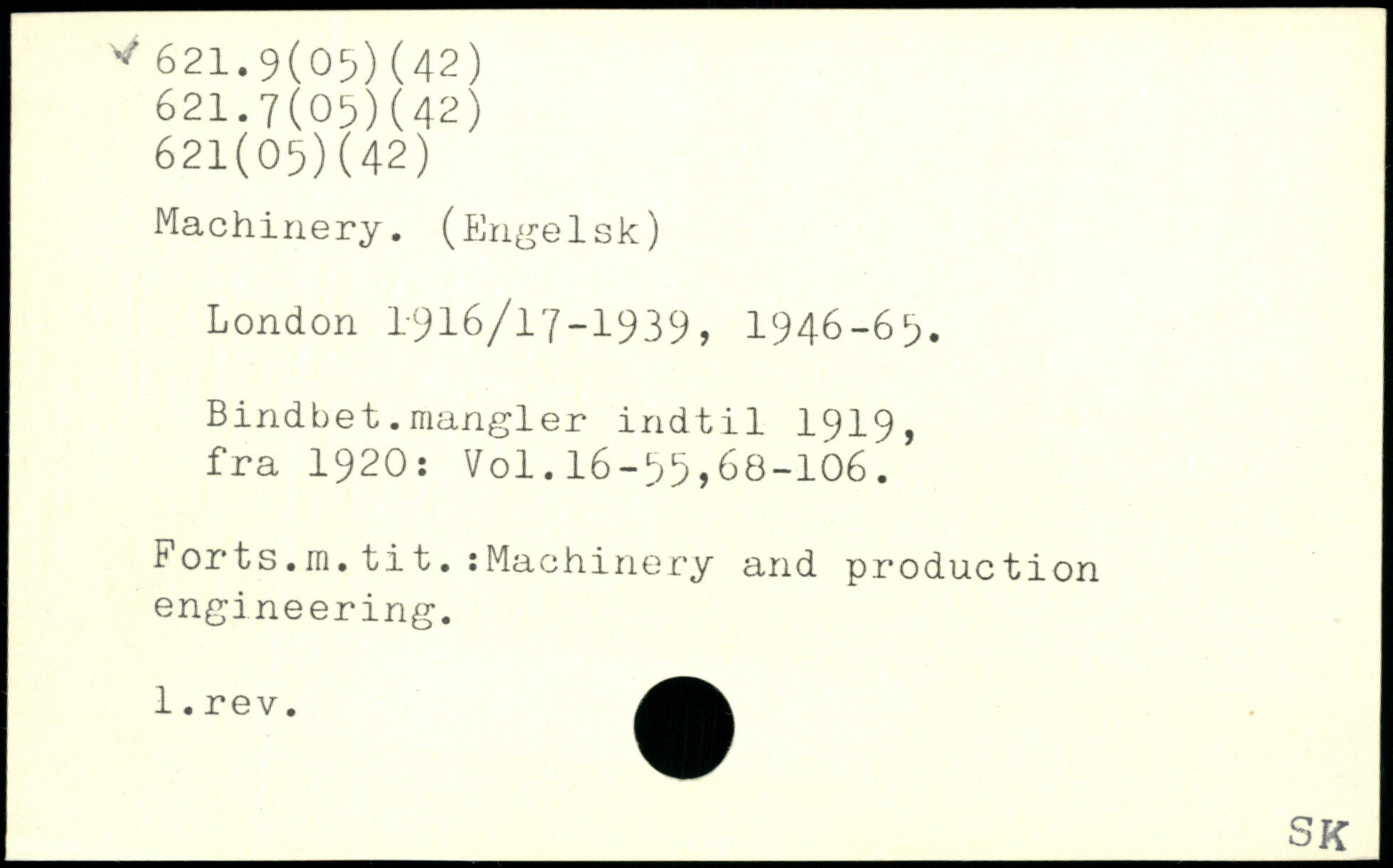 Bindbet.mangier indtil 1919, fra 1920: