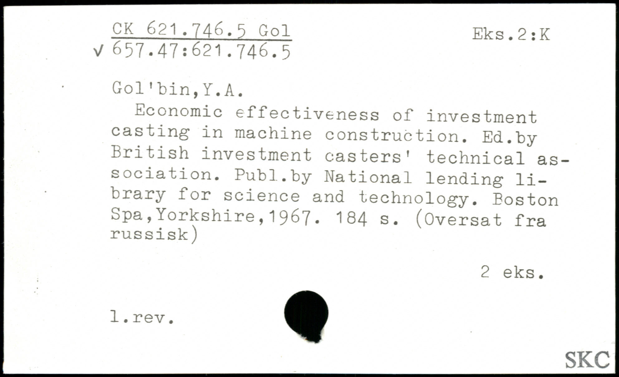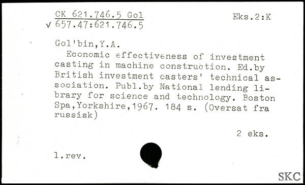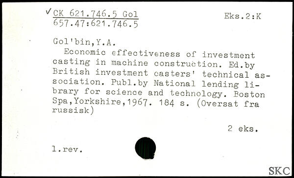 Economic effectiveness of investment casting in machine construction. Ed.by British investment casters' technical association.