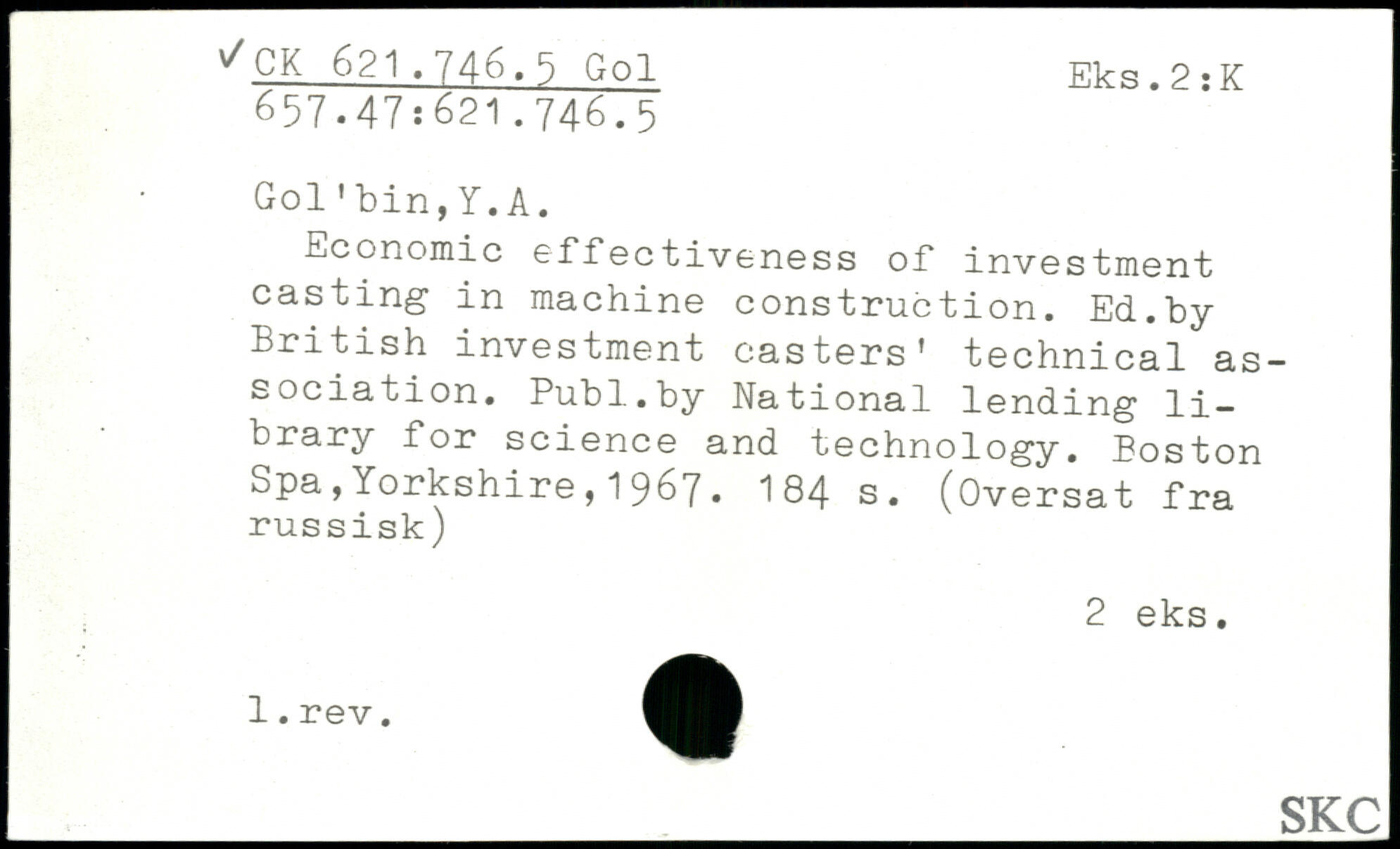 UDK: 621.746., 5 Gol, 657.47:621.746.5