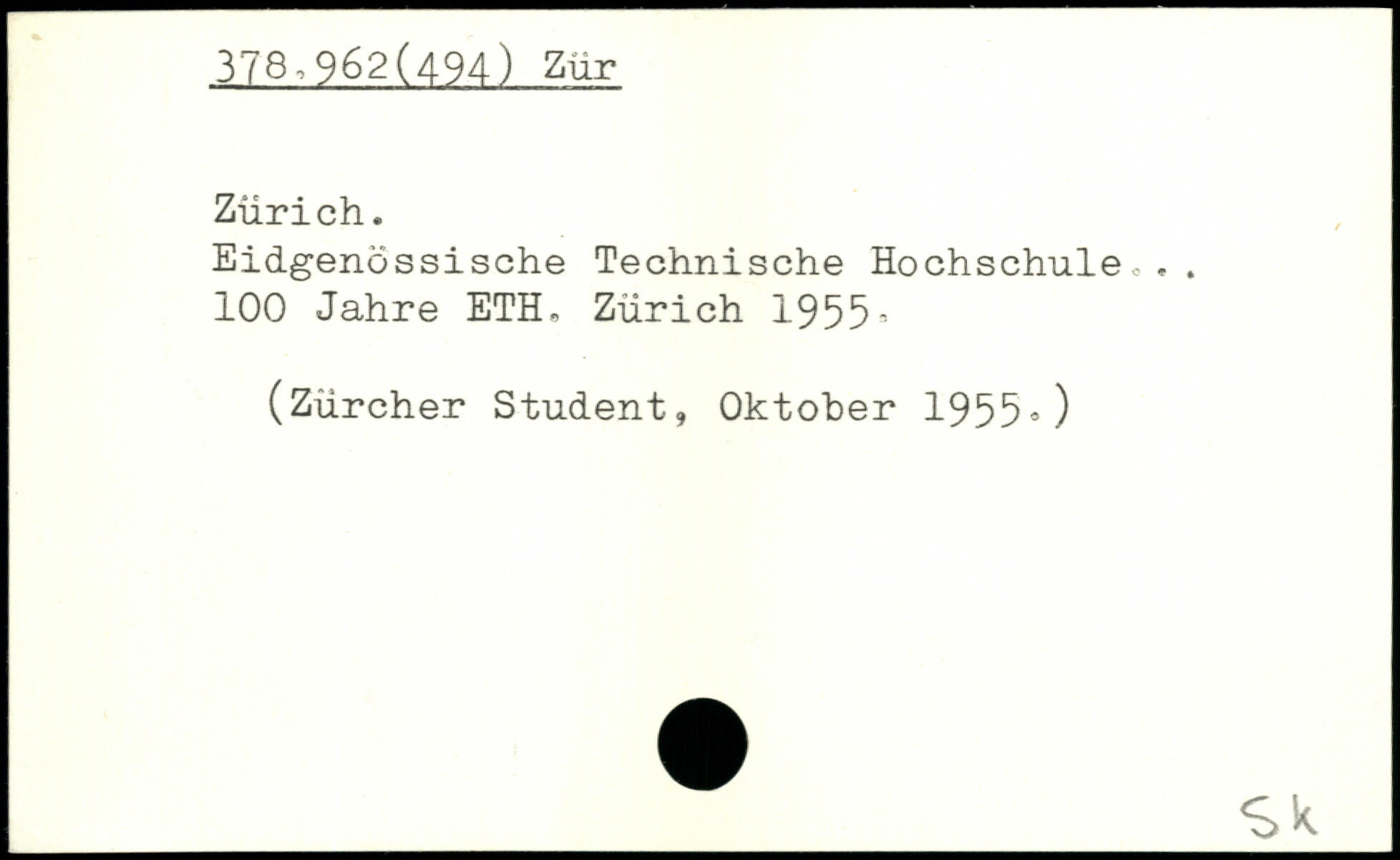 Eidgenössische Technische Hochschule... 100 Jahre ETH, Zürich 1955’ (Zürcher Student, Oktober 1955,) _