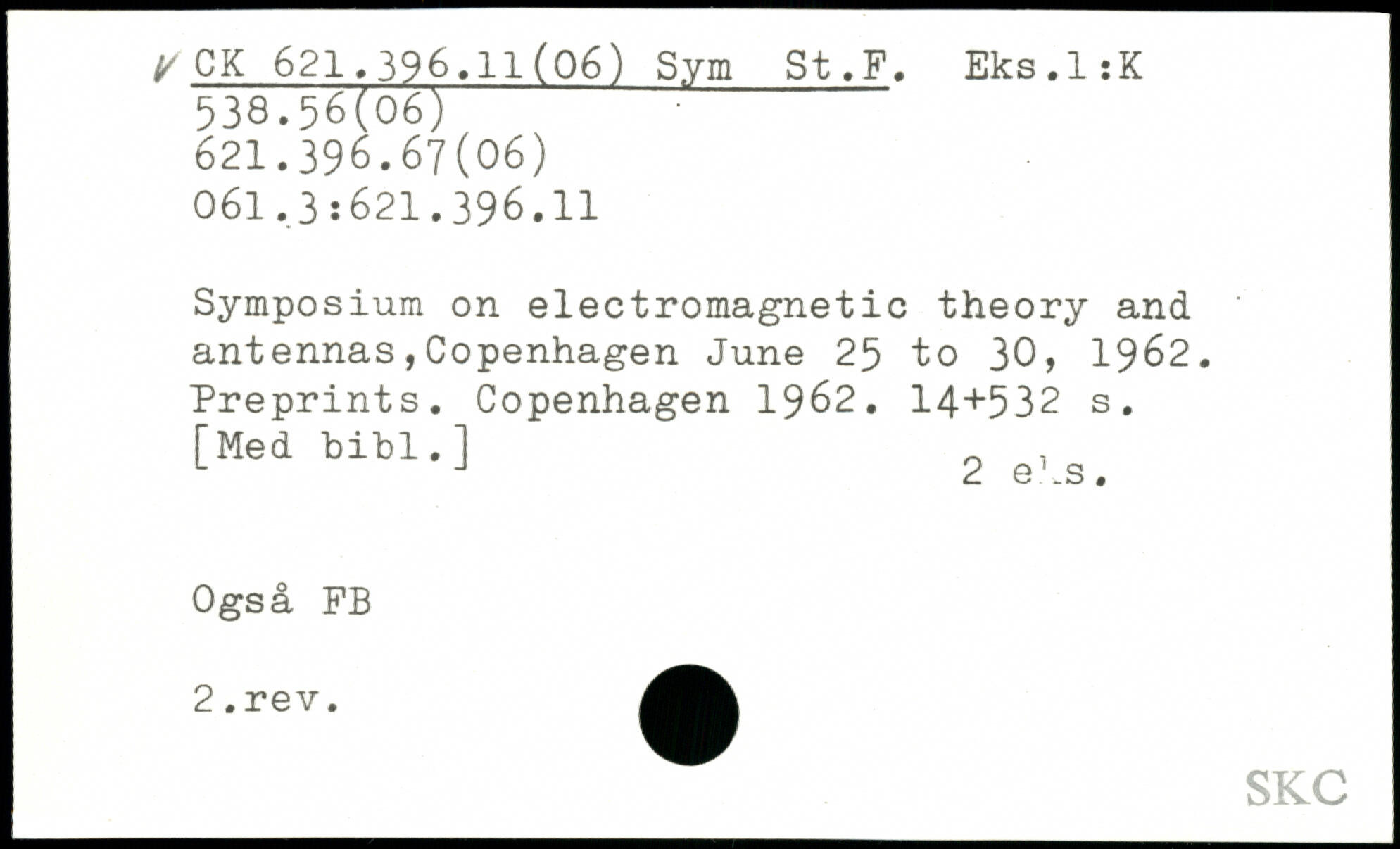 Symposium on electromagnetic theory and antennas,Copenhagen June 25 to 30, 1962. Preprints.
