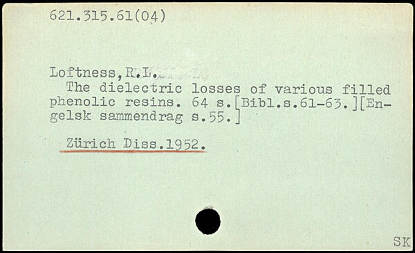 The dielectric losses of various filled phenolic resins. 64_s.