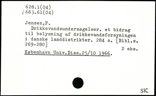 Drikkevandsundersøgelser, et bidrag til belysning af drikkevandsforsyningen i danske landdistrikter.