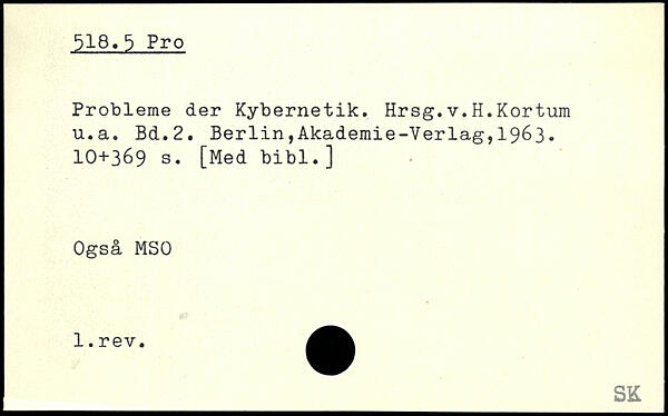 Probleme der Kybernetik. Hrsg.v.H.Kortum u.a.