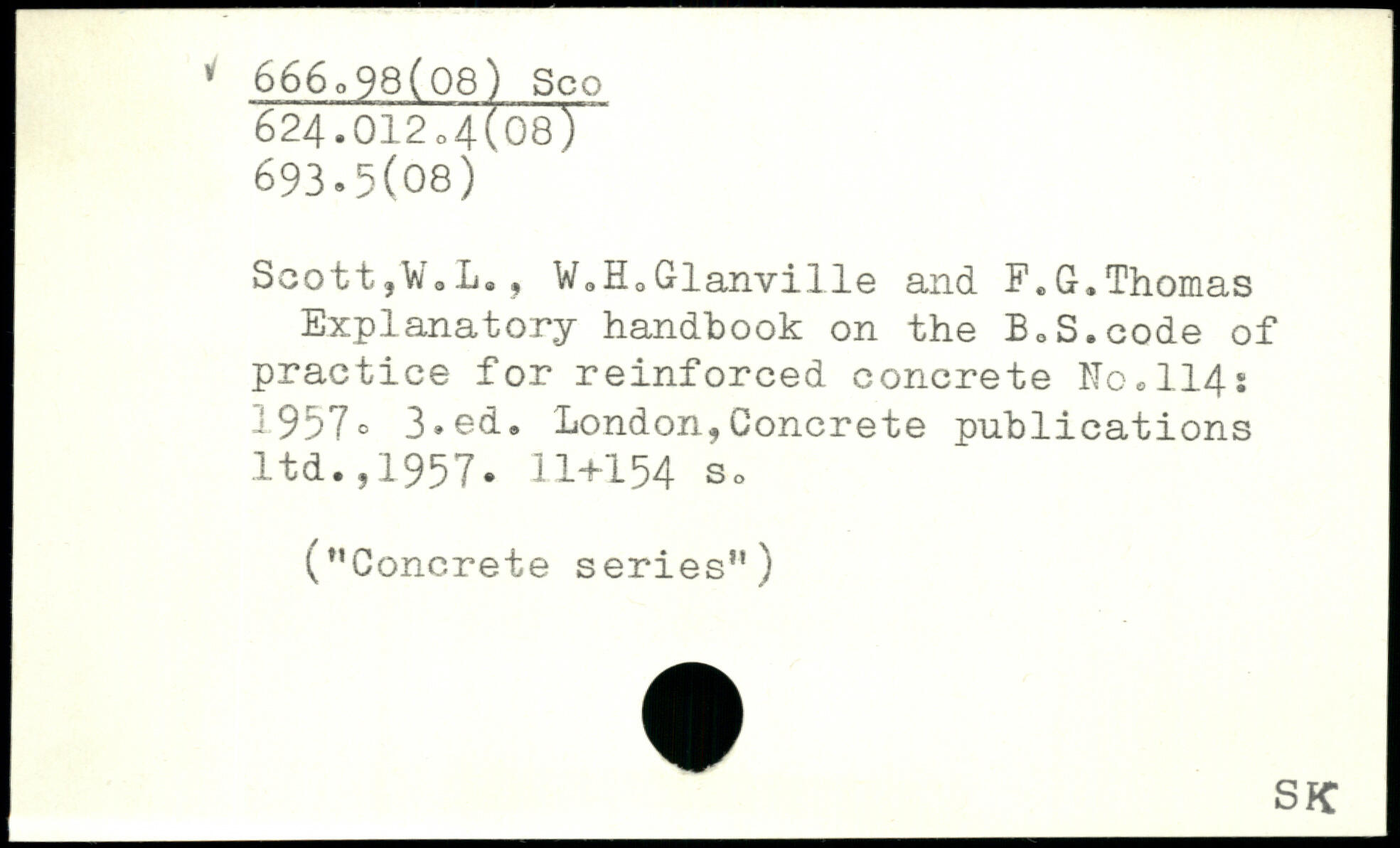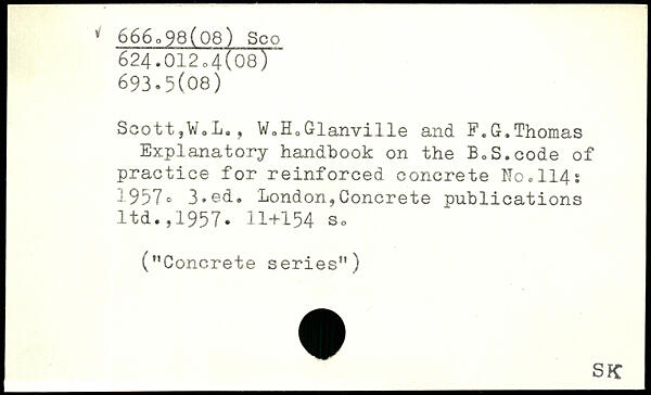 Scott,W.L., V,H.Glanville and F.G.Thomas Explanatory handbook on the BoS.code of practice for reinforced concrete No.114: 1 957=