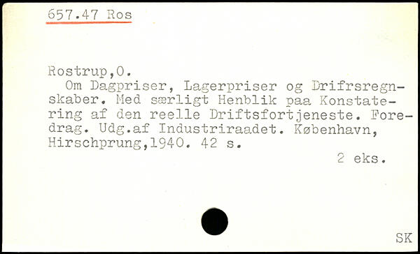 Om Dagpriser, Lagerpriser og Driftsregnskaber. Med særligt Henblik paa Konstatering af den reelle Driftsfortjeneste. Foredrag. Udg.af Industriraadet.