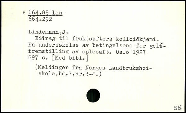 Lindemamij Jr Bidrag til fruktsafters kolloidkjemi, En undersøkelse av betingelsene for gele-fremst1111ng av eplesaft. Oslo 19270