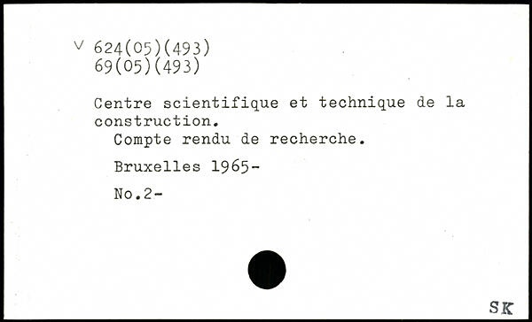 Centre scientifique et technique de la construction. Compte rendu de recherche.