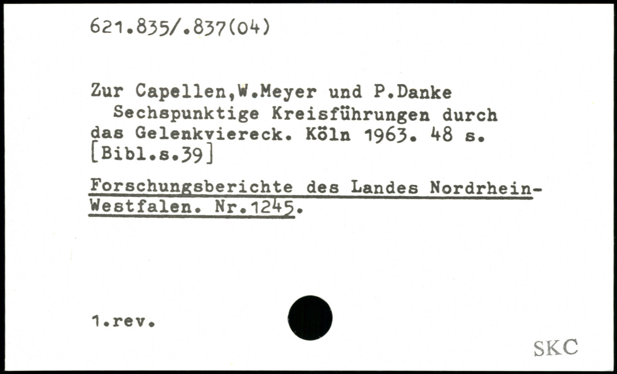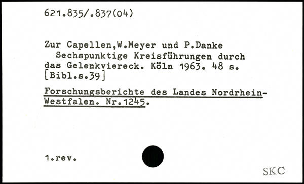 Zur Capellen,W.Meyer und P.Danke Sechspunktige Kreisführungen durch das Gelenkviereck.