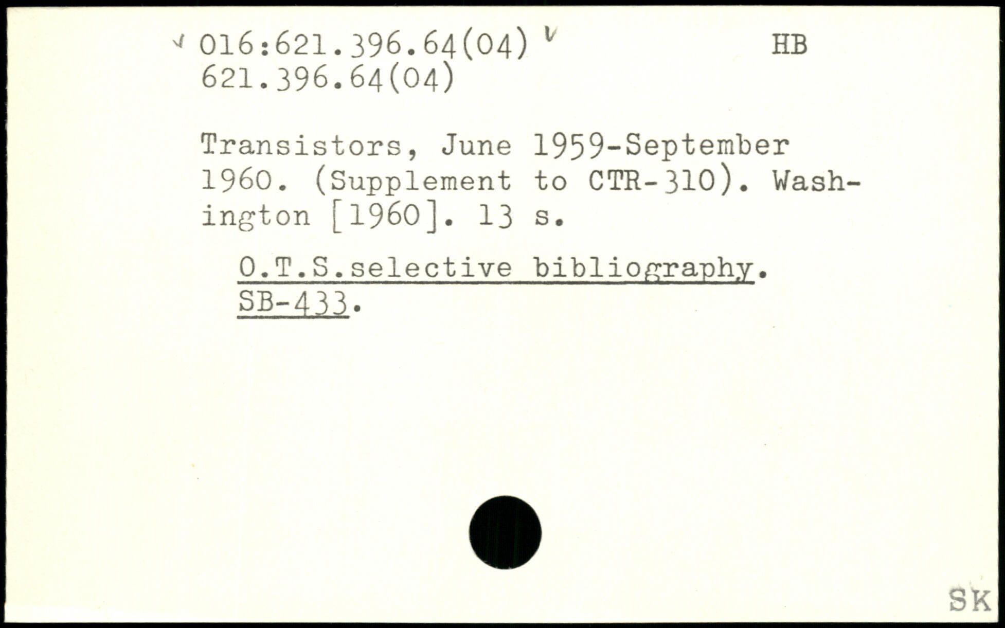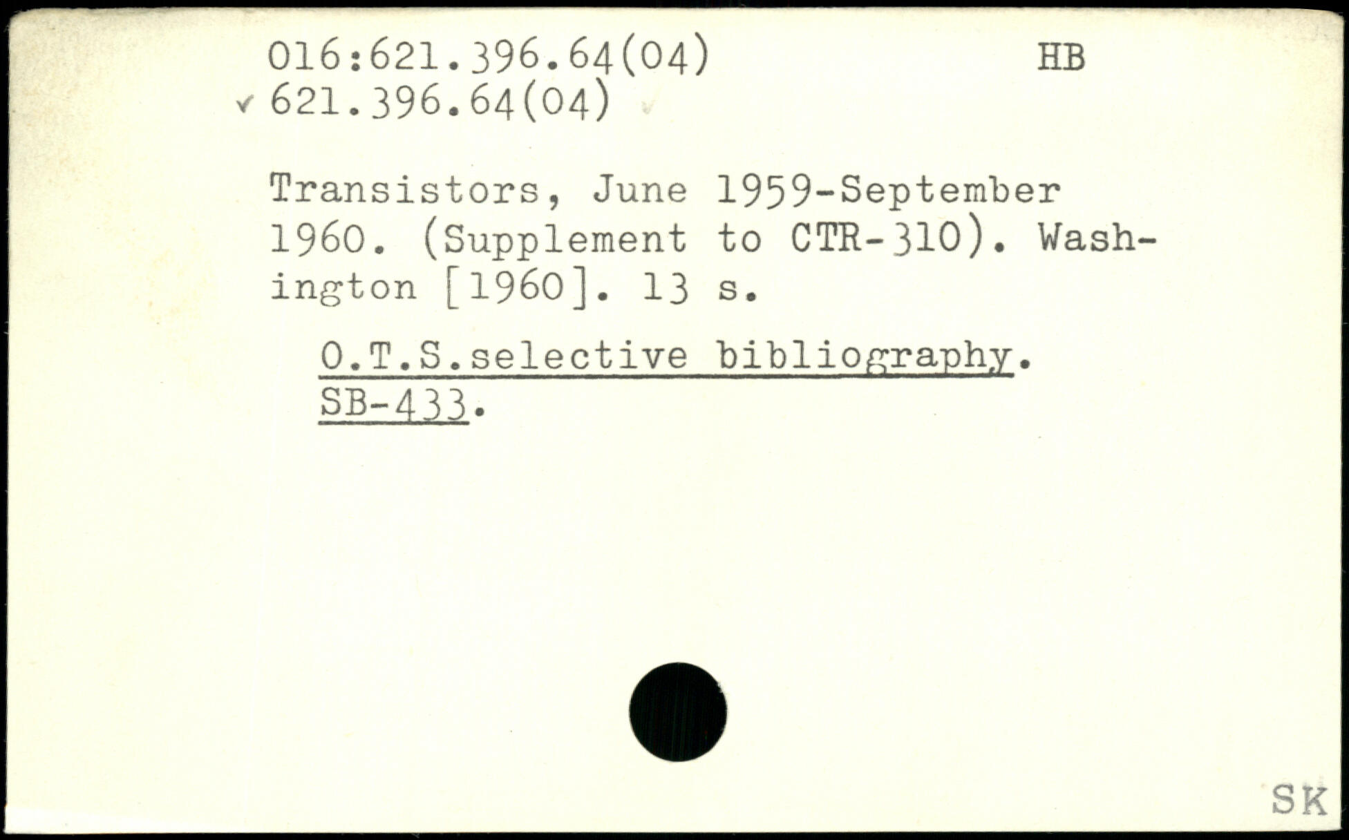 Transistors, June 1959-September 1960. (Supplement to CTR-310).