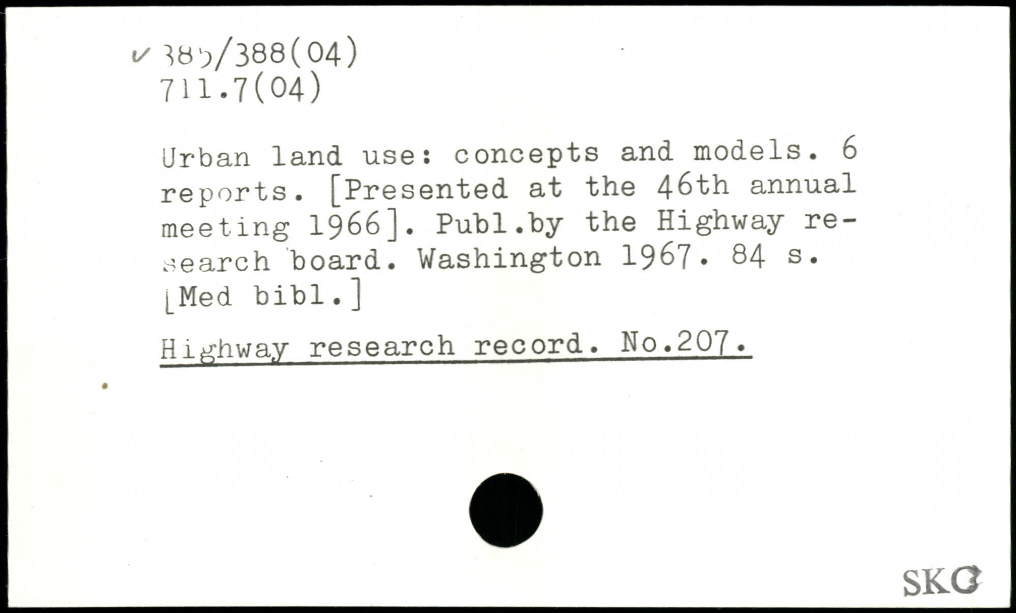 Urban land use: concepts and models. 6 reports. [Presented at the 46th annual meeting 1966].