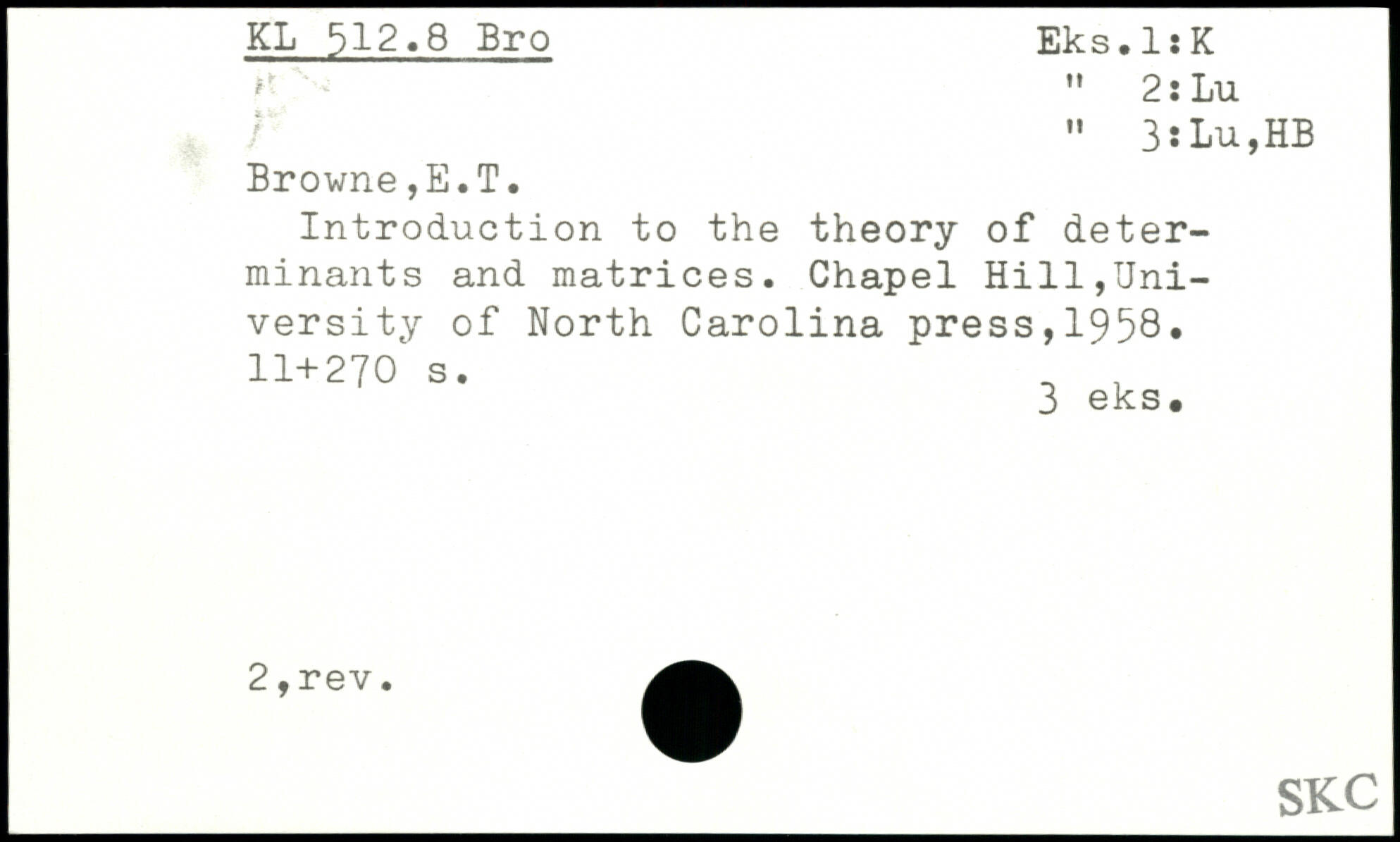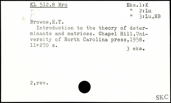 Introduction to the theory of determinants and matrices. Chapel Hill,University of North Carolina press,1958