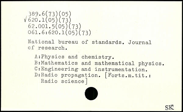 National bureau of standards. Journal cf research. AîPhysics and chemistry. B:Mathematics and mathematical physics. C:Engineering and instrumentation. D:Radio propagation. [Forts.m.tit.: Radio science]