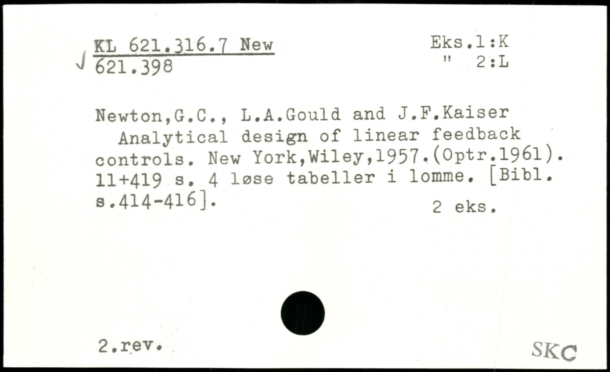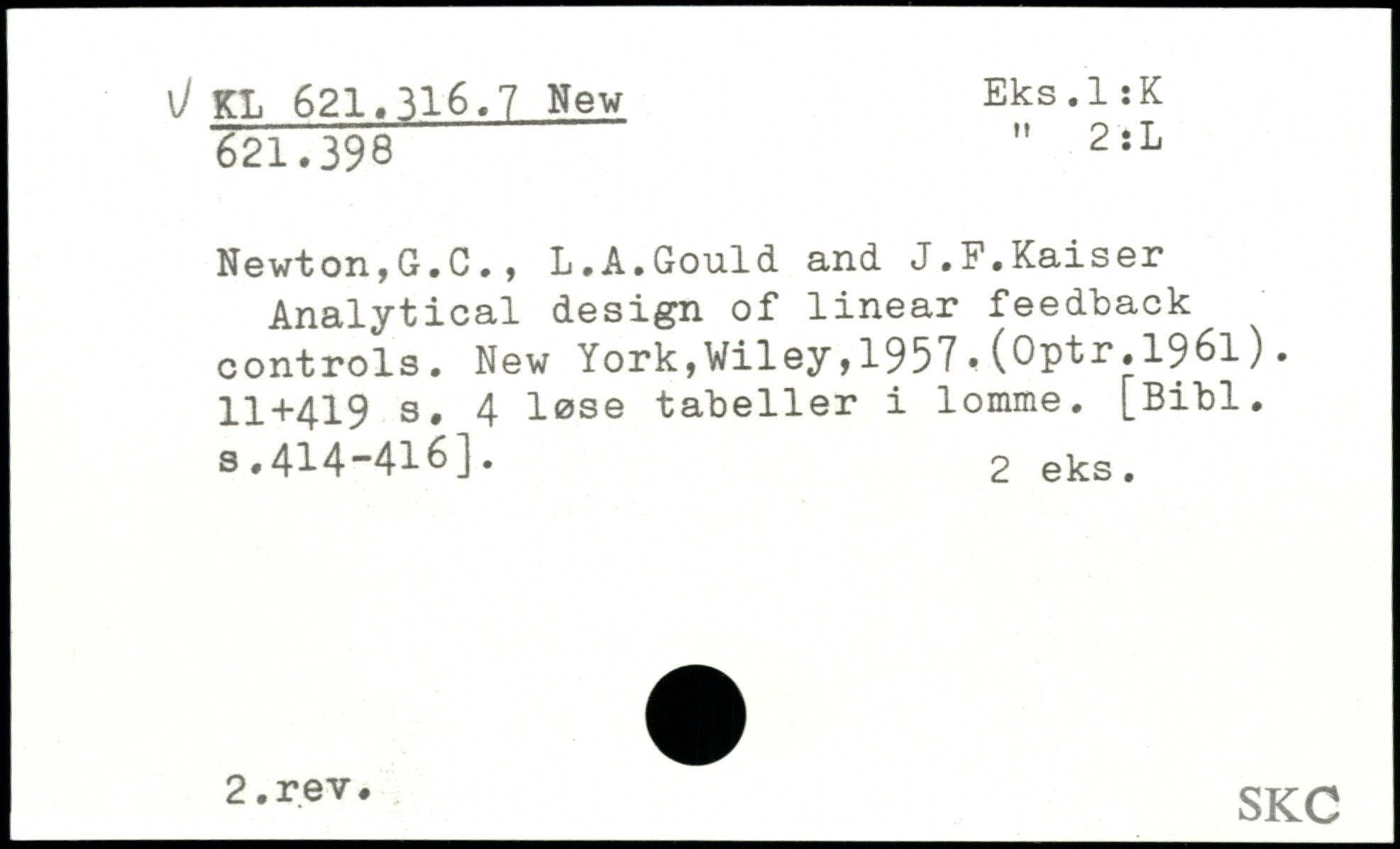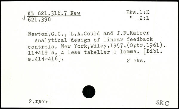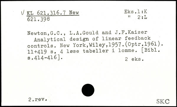 Newton,G.C., L.A.Gould and J.F.Kaiser Analytical design of linear feedback controls.