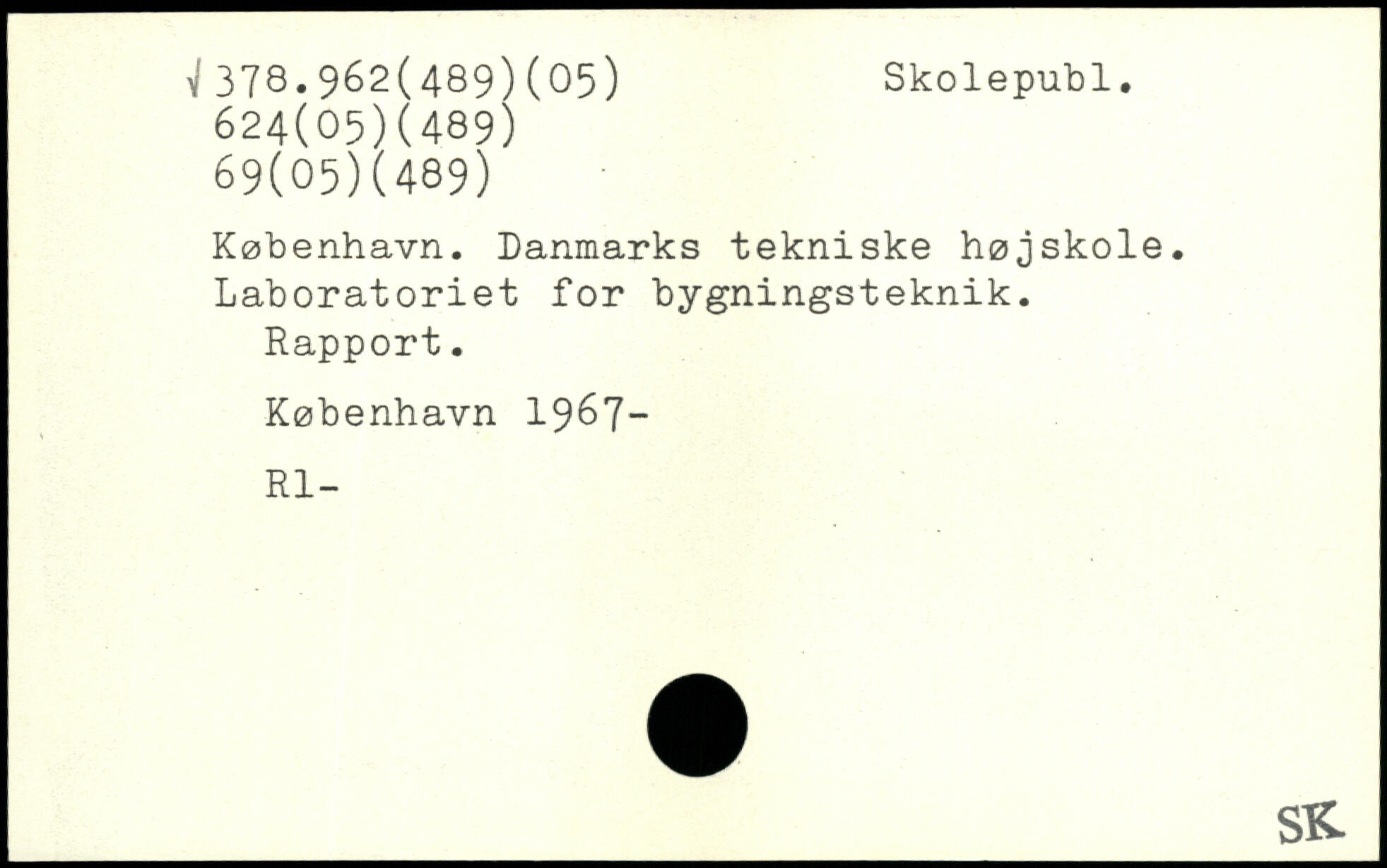 København. Danmarks tekniske højskole. Laboratoriet for bygningsteknik. Rapport.