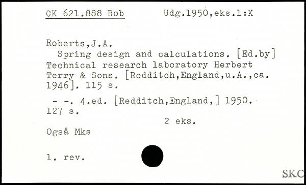 Spring design and calculations. [Ed.by] Technical research laboratory Herbert Terry & Sons. [Redditch,England,u.A.,ca. 1946].