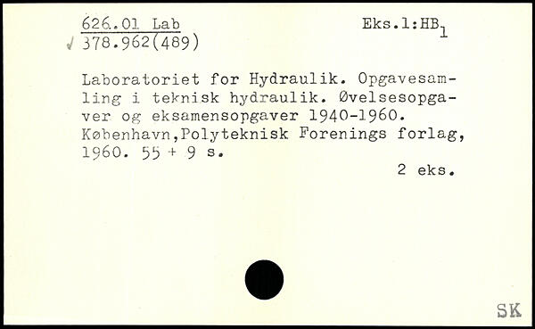 Laboratoriet for Hydraulik. Opgavesamling i teknisk hydraulik. Øvelsesopgaver og eksamensopgaver 1940-1960.