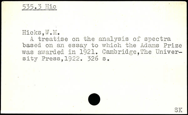 A treatise on the analysis of spectra based on an essay to which the Adams Prize was awarded in 1921.