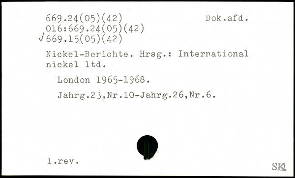Nickel-Berichte. Hrsg.: Interrational nickel ltd.