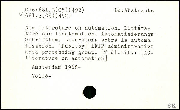 New literature on automation. Littérature sur l'automation. Automatisierungs-Schrifttum. Literatura sobre la automa-tizacion.