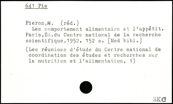 Les comportement alimentaire et l'appétit. Paris,Éd.du Centre national de la recherche scientifique,1952.