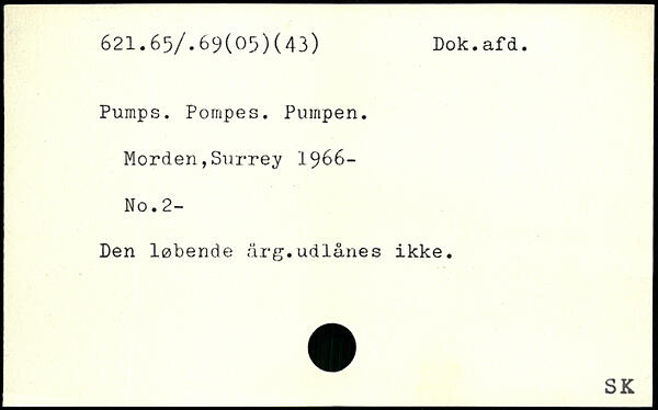 Pumps. Pompes. Pumpen. Morden,Surrey 1966-No.2- Den løbende årg.udlånes ikke.