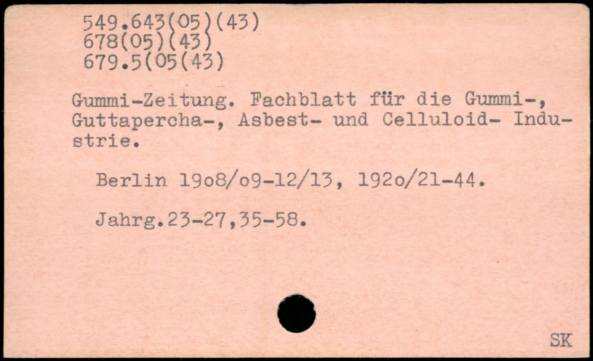 Gummi-Z ei tung. Fachblatt für die Gummi-, Guttapercha-, Asbest- und Celluloid- Industrie, Berlin 19o8/o9-12/l3, 192o/21-44. Jahrg.23-27,35-58.