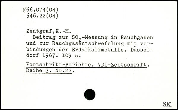 Beitrag zur SO^-Messung in Rauchgasen und zur Rauchgasentschwefelung mit Verbindungen der Erdalkalimetalle. Düsseldorf 1967.