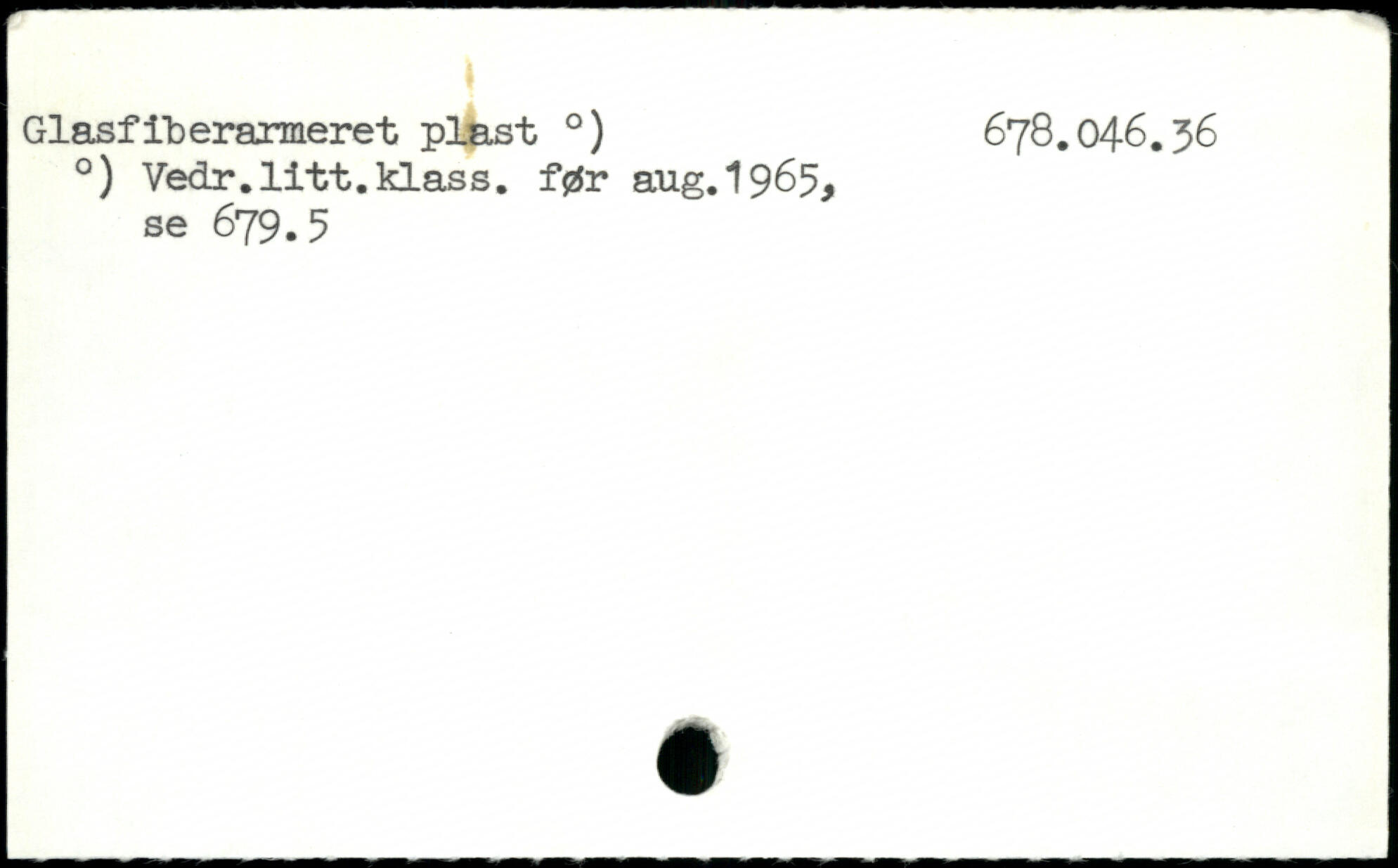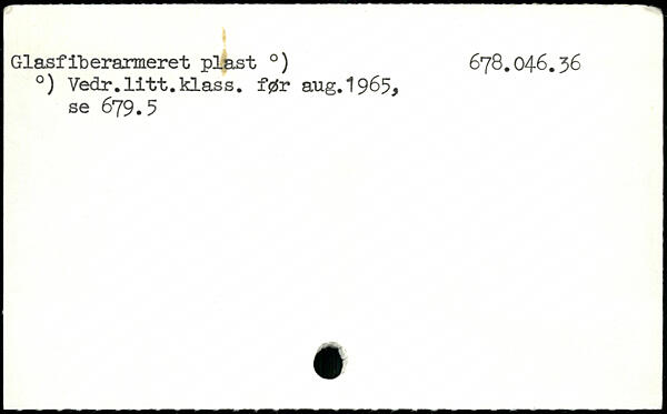 Glasfiberarmeret plast .) 678.046.36 .) Vedr.litt.klass. før aug.1965> se 679.5