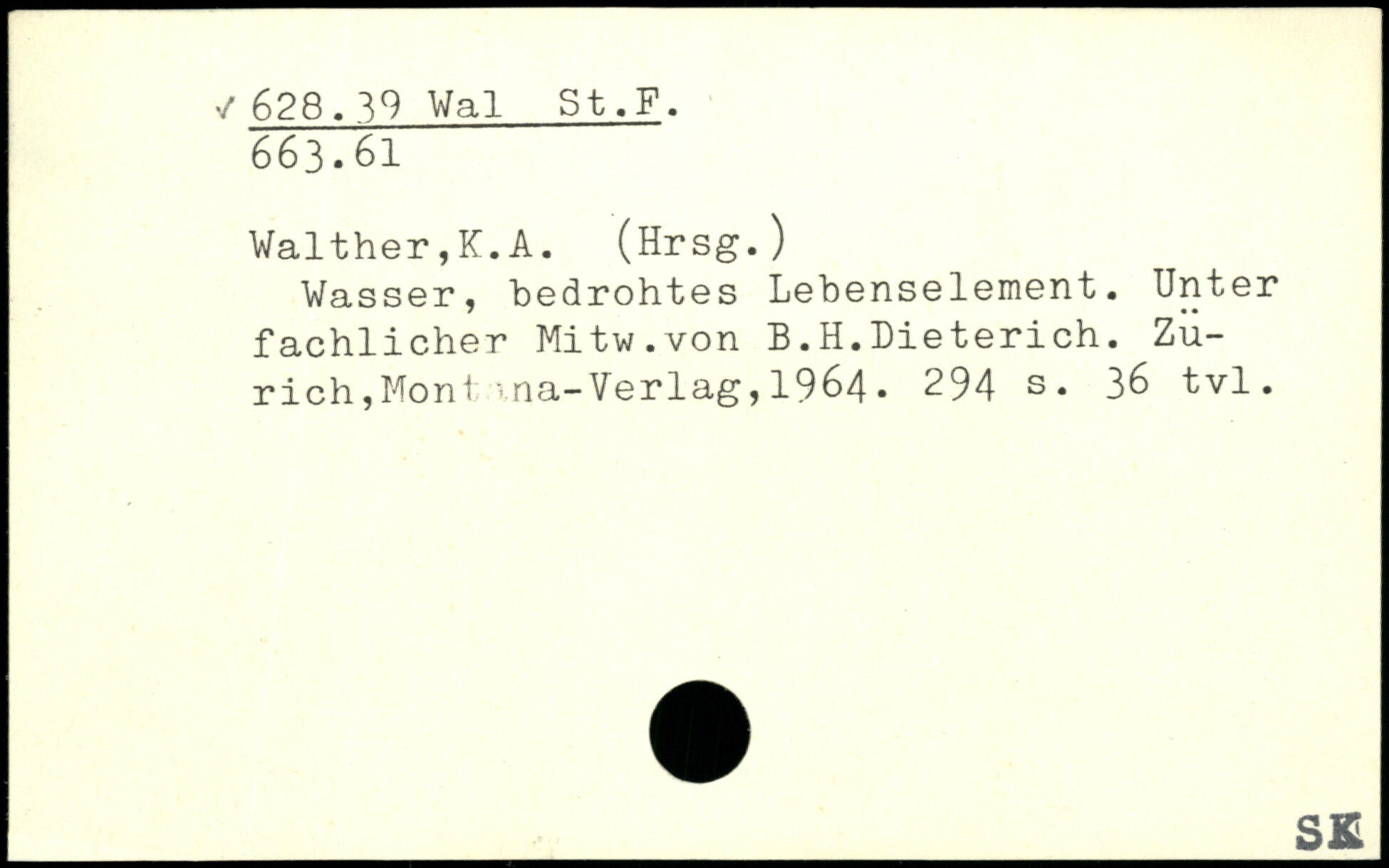 Wasser, bedrohtes Lebenselement. Unter fachlicher Mitw.von B.H.Dieterich.