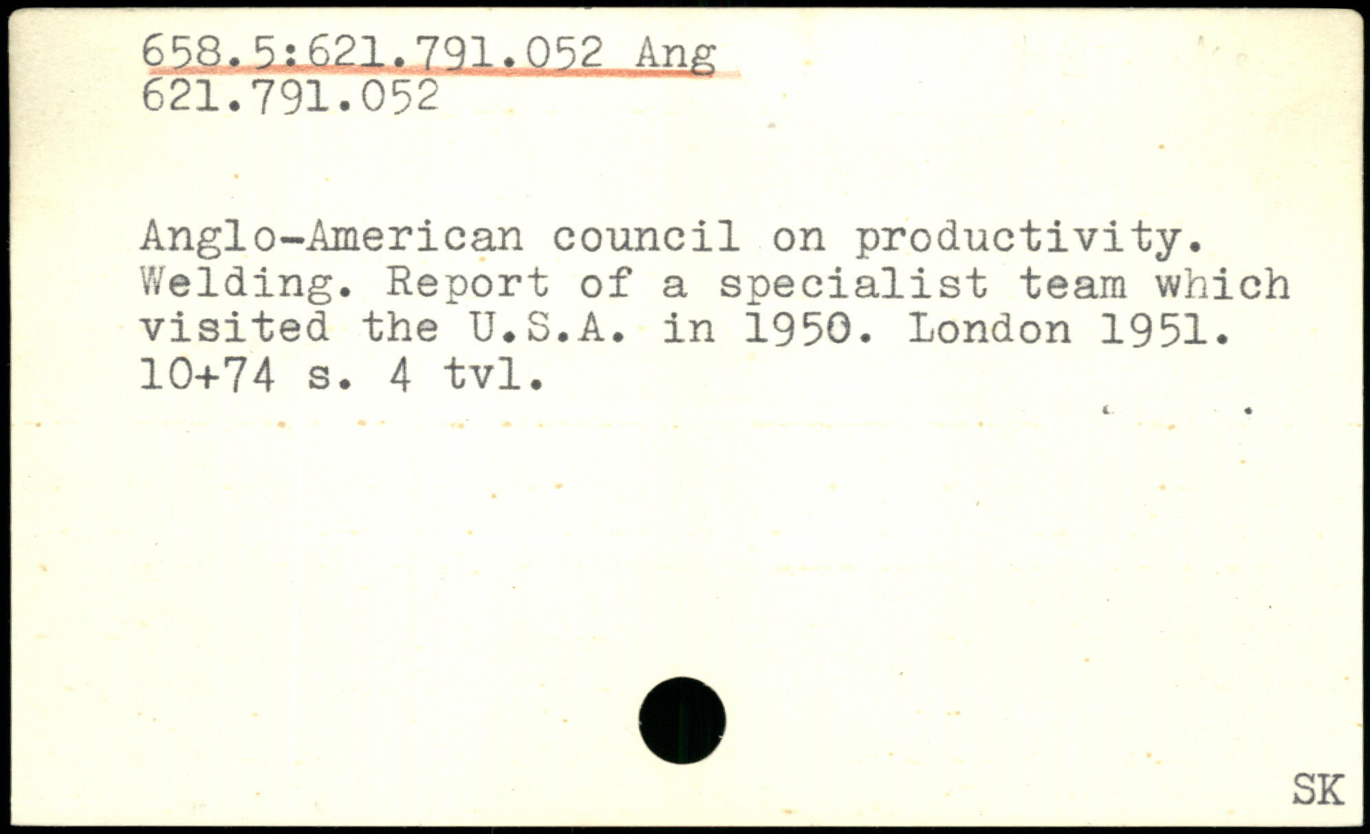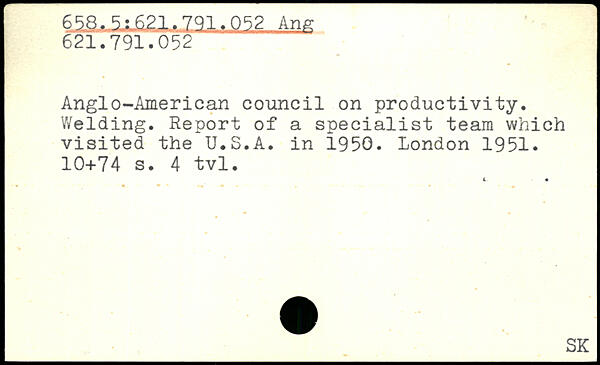 Anglo-American council on productivity. Welding. Report of a specialist team which visited the U.S.A. in 1950.