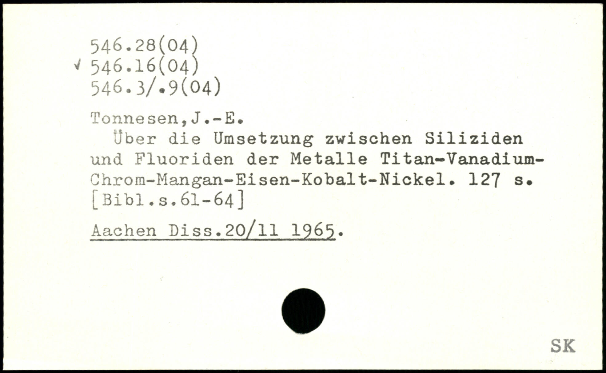 Uber die Umsetzung zwischen Siliziden und Fluoriden der Metalle Titan-Vanadium-Chrom-Mangan-Eisen-Kobalt-Nickel.