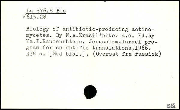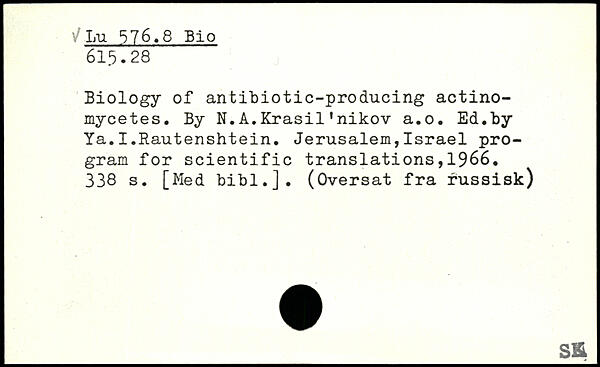 Biology of antibiotic-producing actinomycètes. By N.A.Krasil’nikov a.o. Ed.by Ya.I.Rautenshtein. Jerusalem,Israel program for scientific translations,1966.