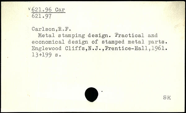 Metal stamping design. Practical and economical design of stamped metal parts. Englewood Cliffs,N.J.,Prentice-Halls1961.