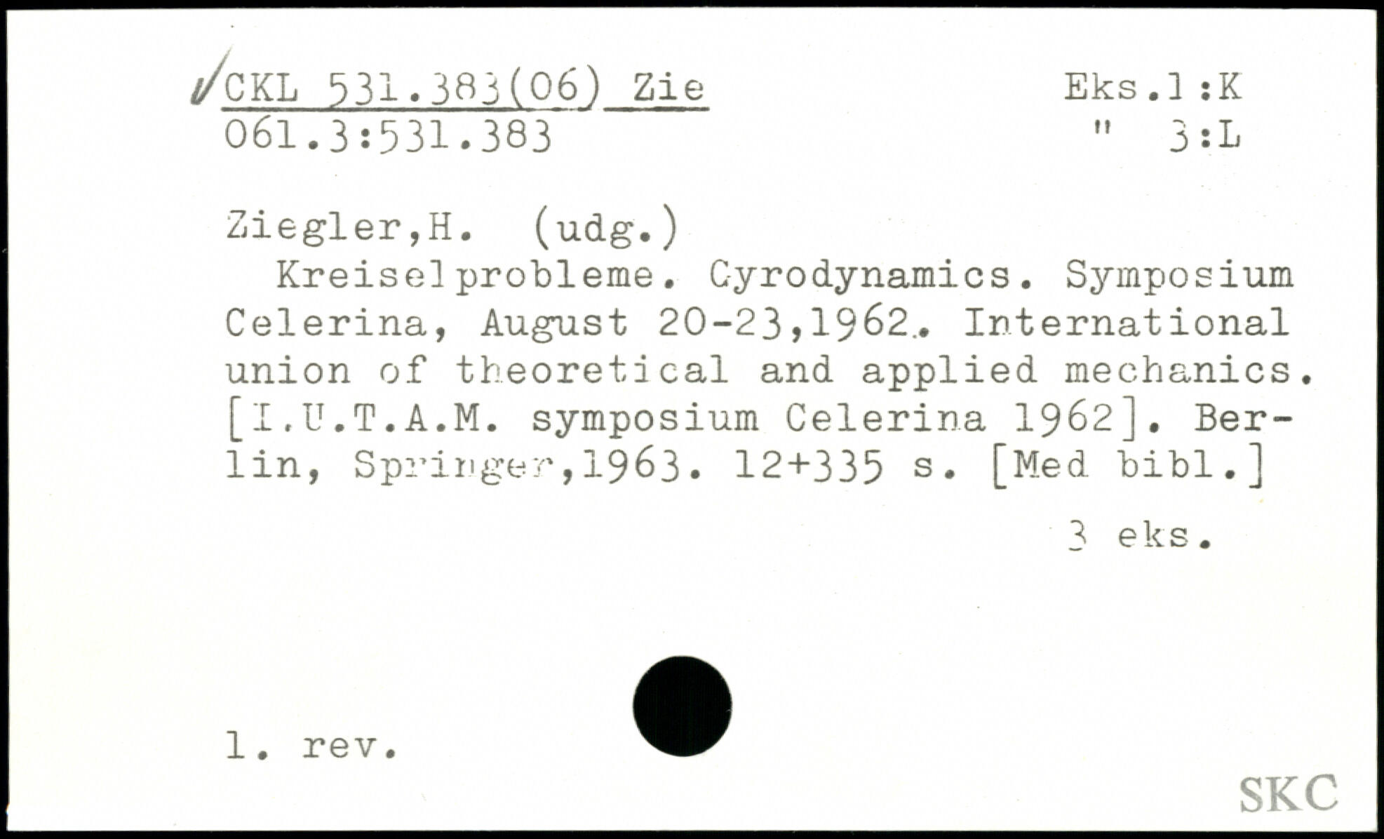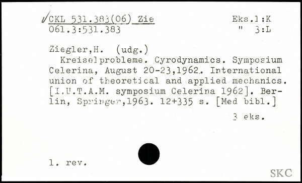 Kreise]probleme. Gyrodynamics. Symposium Celerina, August 20-23)1962.. International union of theoretical and applied mechanics. [l.U.T.A.M. symposium Celerina 1962].
