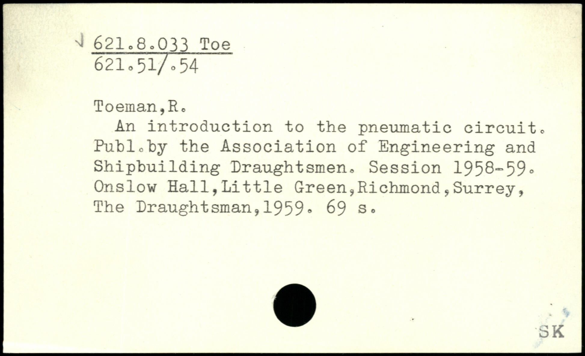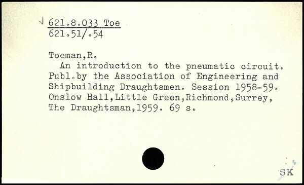 Toeman,Rc An introduction to the pneumatic circuit. Puhloby the Association of Engineering and Shipbuilding Draughtsmen. Session 1958“59.