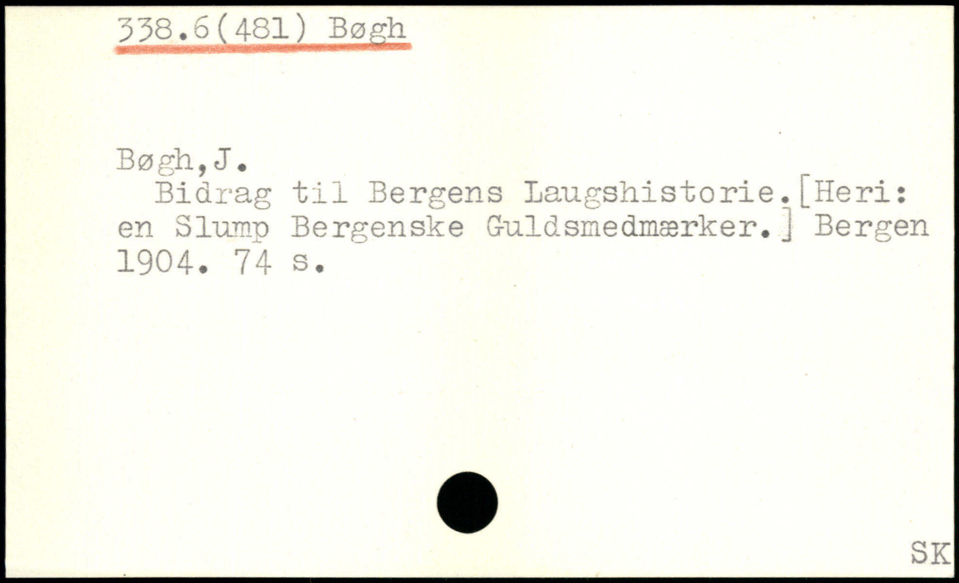Bidrag til Bergens laugshistorie.[Heri: en Slump Bergen ske G-uldsmedmærker. j