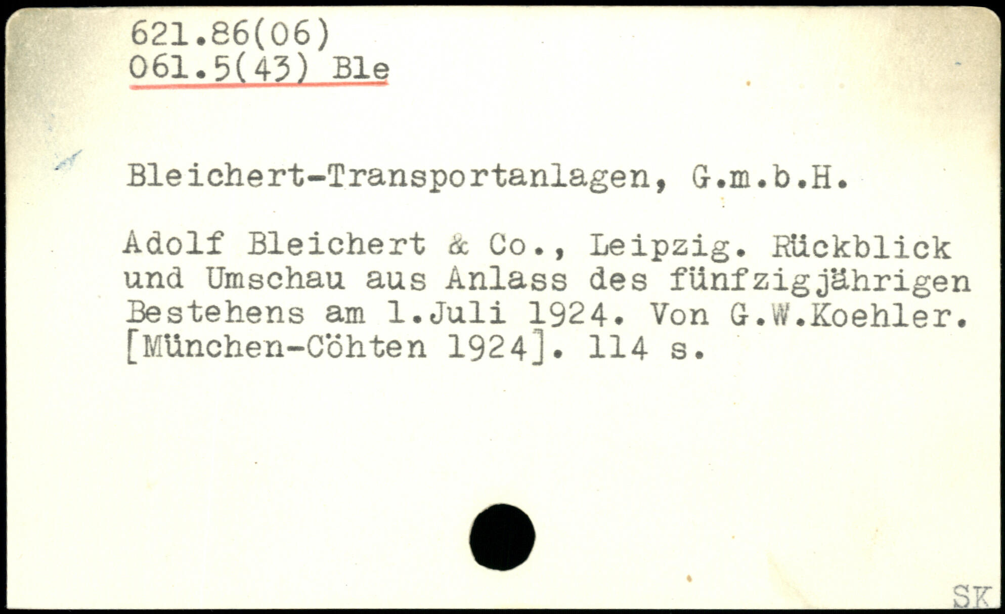 Bleichert-Transportanlagen, G.m.b.H. Adolf Bleichert & Co., Leipzig. Rückblick und Umschau aus Anlass des fünfzigjährigen Bestehens am l.Juli 1924. Von G.tf.Koehler.