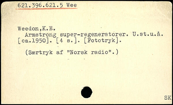Armstrong super-regeneratorer. U.st.u.å. [ca.1950]. [