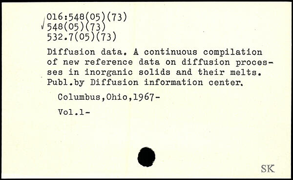 Diffusion data. A continuous compilation of new reference data on diffusion processes in inorganic solids and their melts.