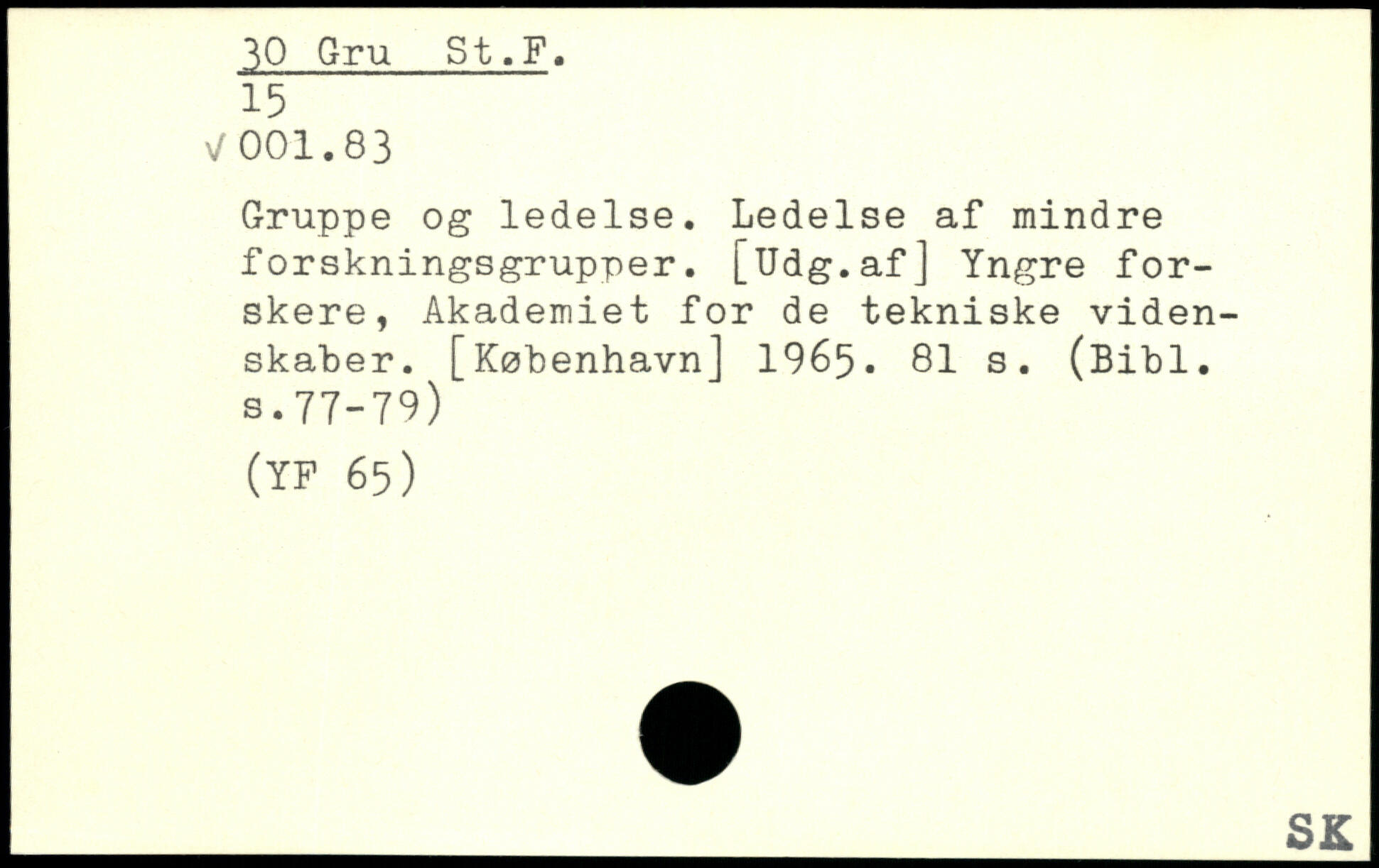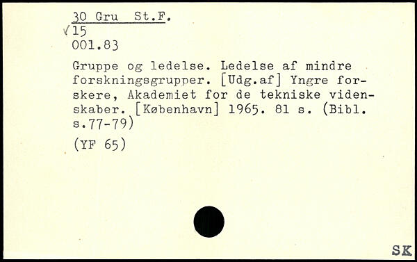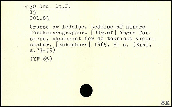Gruppe og ledelse. Ledelse af mindre forskningsgrupper. [Udg.afJ Yngre forskere, Akademiet for de tekniske videnskaber.