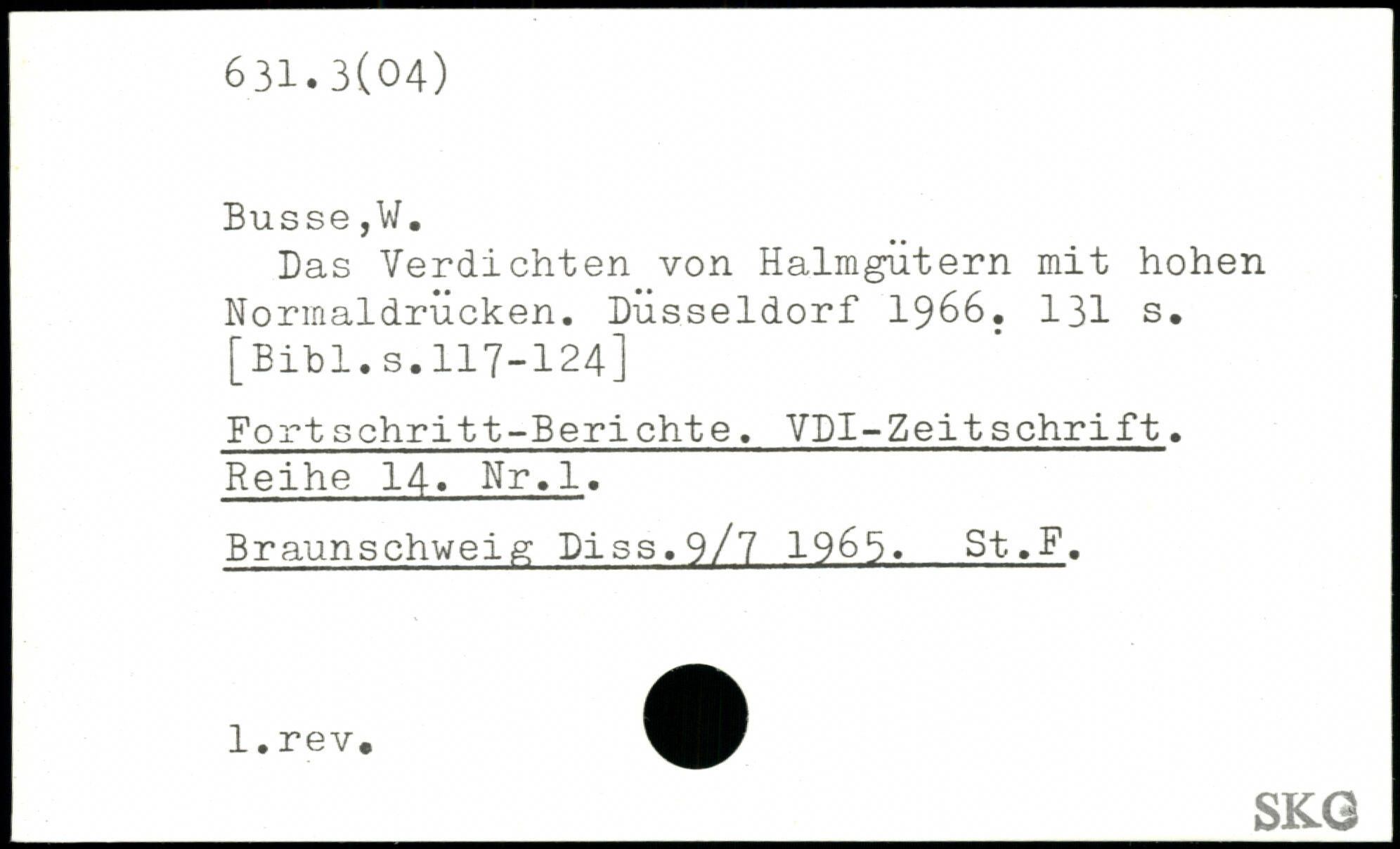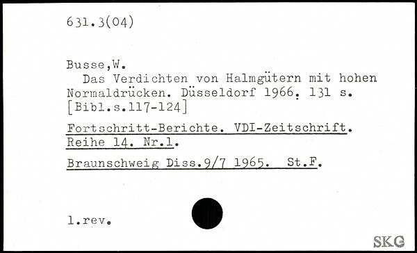 Das Verdichten von Halmgütern mit hohen Normaldrücken. Düsseldorf 1966.