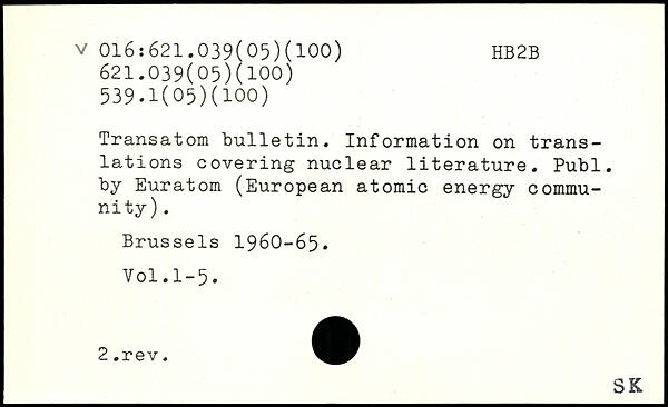 Transatom bulletin. Information on translations covering nuclear literature.