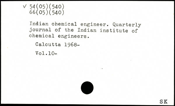 Indian chemical engineer. Quarterly journal of the Indian institute of chemical engineers. Calcutta 1968-