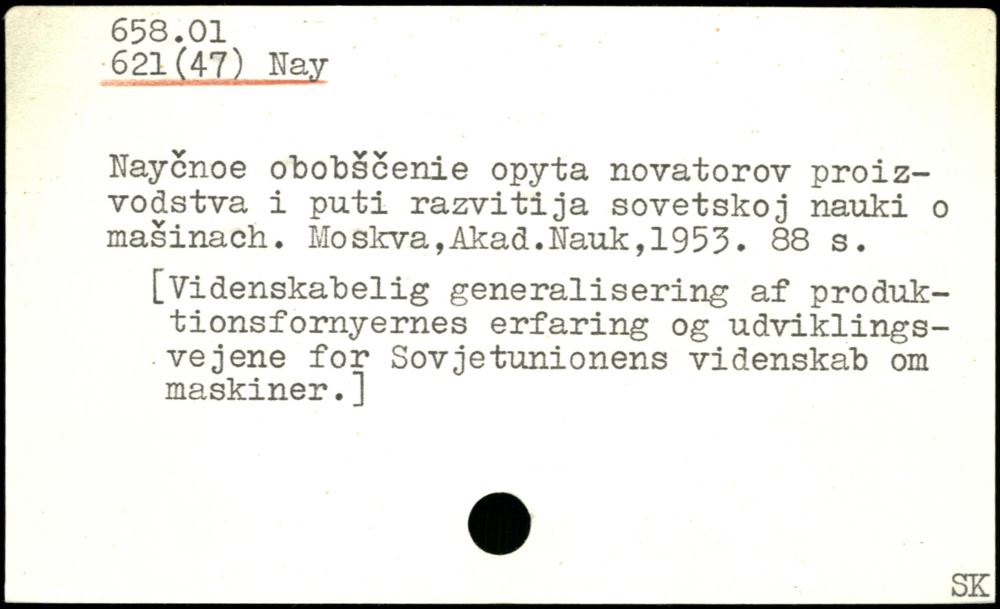 Naycnoe obobscenie opyta novatorov proiz-vodstva i puti razvitija sovetskoj nauki o masinach. Moskva,Akad.Nauk,1953.