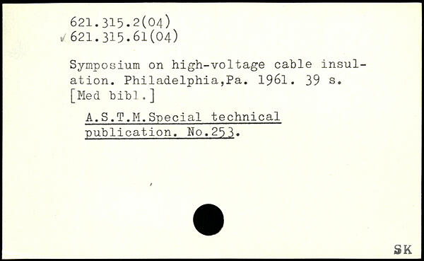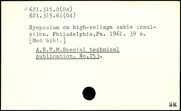 Symposium on high-voltage cable insulation. Philadelphia,Pa. 1961.
