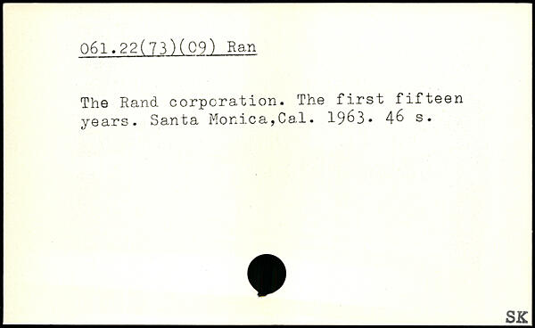 The Rand corporation. The first fifteen years. Santa Monica,Cal. 1963, 4.