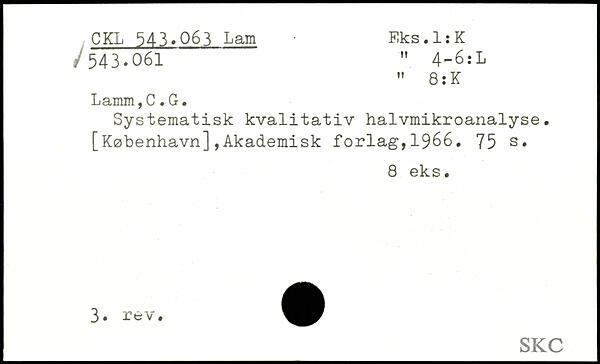 Systematisk kvalitativ halvmikroanalyse. [København],Akademisk forlag,1966.