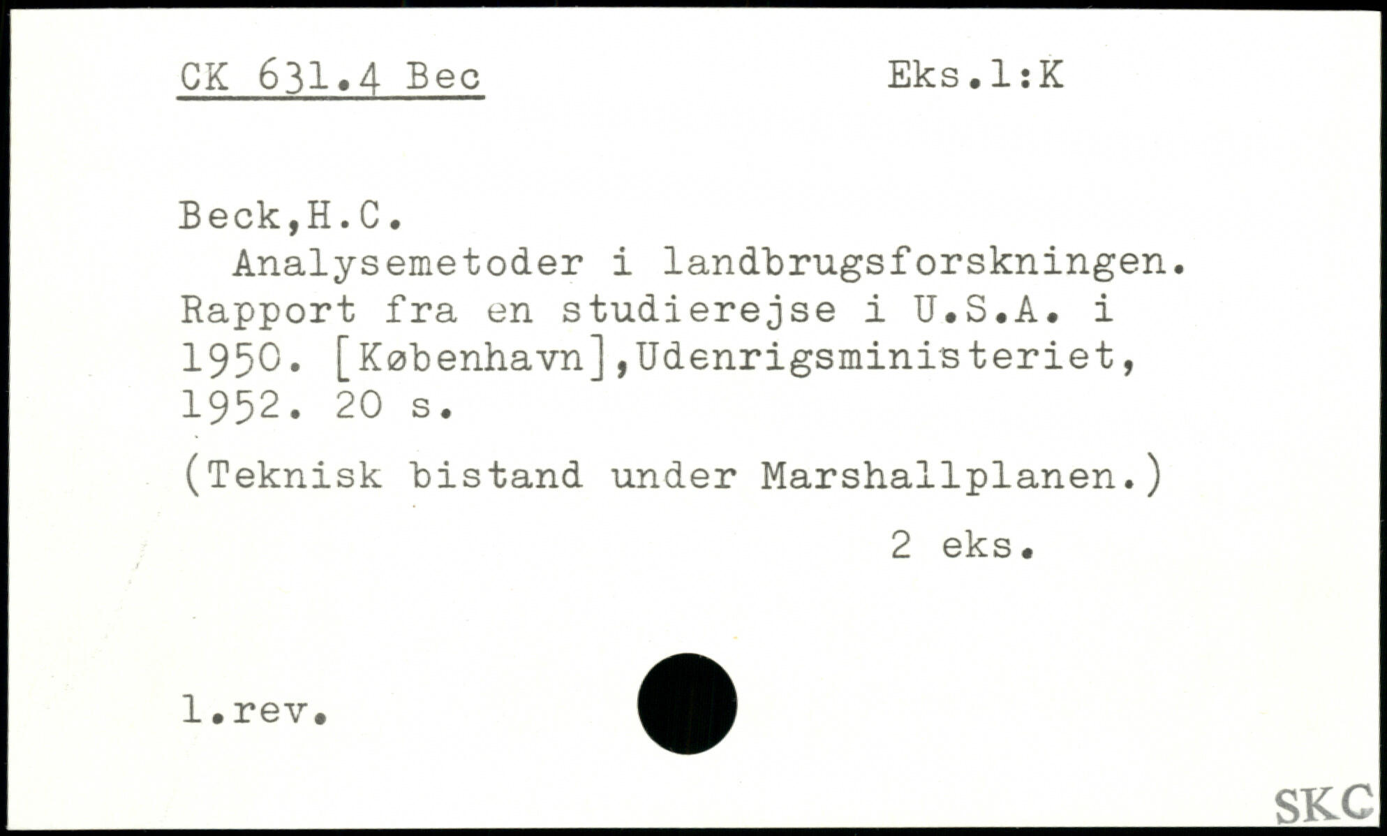 Analysemetoder i landbrugsforskningen. Rapport fra en studierejse i U.S.A. i 1950.