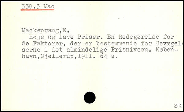 Høje og lave Priser. En Redegørelse for de Faktorer, der er bestemmende for Bevægel, serne i det almindelige Prisniveau.